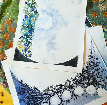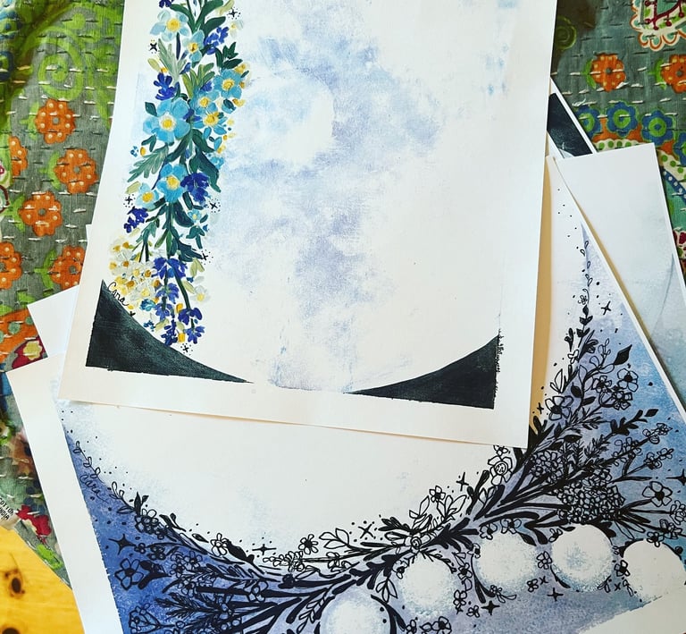 Paintings of women carrying messages like “One of a kind” celebrating strength, resilience, and identity. vibrant artworks inspired by nature and joyful creativity.
